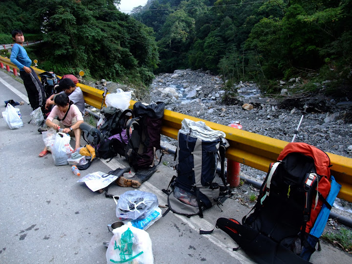 回到三叉路口,我們開始吃簡單午餐,準備等下要陡降海拔一千多公尺。